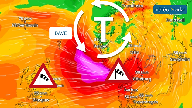 Carte des vents : la tempête DAVE tient en haleine le sud de la Scandinavie pendant le week-end de Pâques.