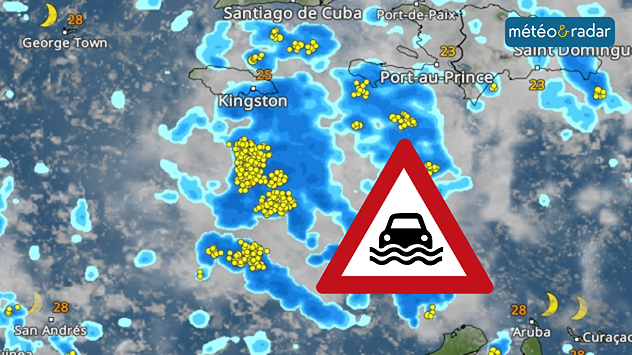 Notre carte radar météo indique des pluies et des orages dans les Caraïbes pour plusieurs jours. Des alertes météorologiques sont en vigueur pour la Jamaïque, Haïti et la République dominicaine.