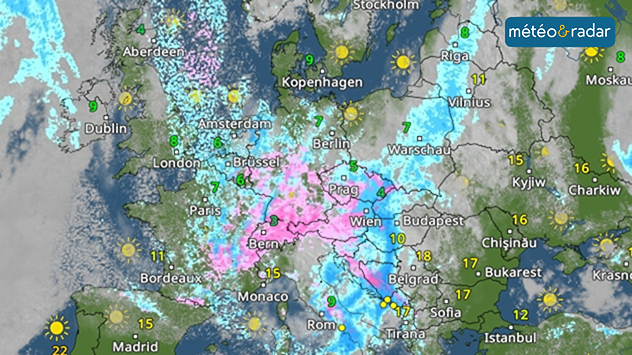 Des vents forts, voire tempétueux, renforcent encore cette impression de fin d'hiver. Au cours de la journée, l'air froid s'étendra jusqu'aux Balkans et atteindra également le centre de l'Italie. Dans les Alpes, il neigera largement, parfois abondamment, jusque dans les vallées.