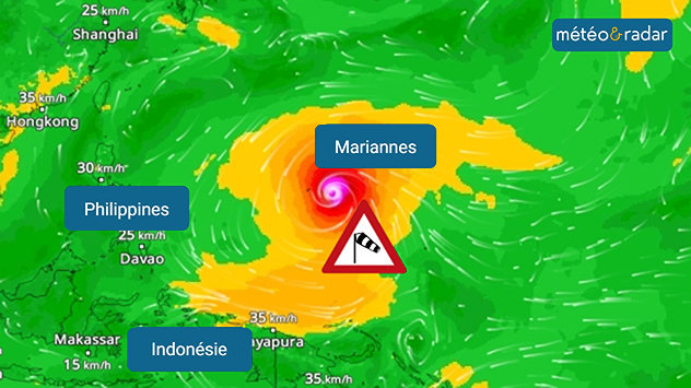Un typhon extrêmement puissant s'est formé entre l'Indonésie et les Philippines. La tempête SINLAKU se dirige vers les îles Mariannes dans les prochaines heures, avec des rafales de vent dépassant les 300 km/h, accompagnées de fortes pluies et de dangereuses ondes de tempête.