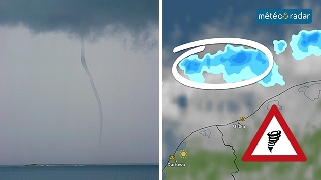 Sur la partie centrale de la côte, de Darłowo à Ustka, on pouvait voir une série de trombes marines. Plusieurs entonnoirs pendaient même du mur de nuages.