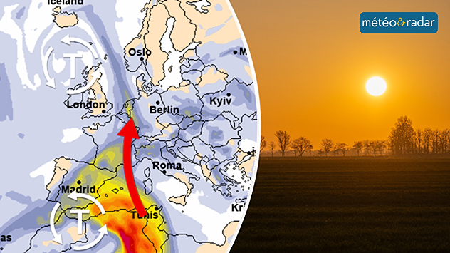 Ce week-end, nous recevrons un « salut du désert » : des dépressions acheminent vers nous de la poussière du Sahara. Celle-ci effectue en quelque sorte un petit périple depuis l'Afrique du Nord jusqu'en Europe centrale, en passant par l'Espagne et la France.