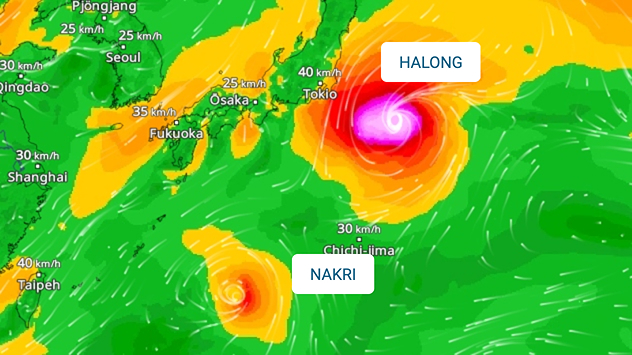 Carte météo avec dépression et alerte de vent sur l'Europe occidentale, vents violents en France et au Benelux.