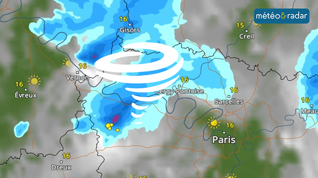 Notre carte radar météo montrant l’orage à l’origine de cette tornade.