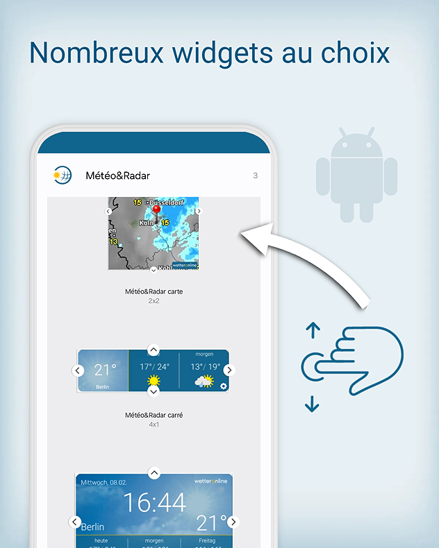 De petits et compacts à grands et détaillés, les widgets vous fournissent des informations météo plus ou moins détaillées en fonction de leur taille. Plus le widget est grand, plus il affiche d'informations.