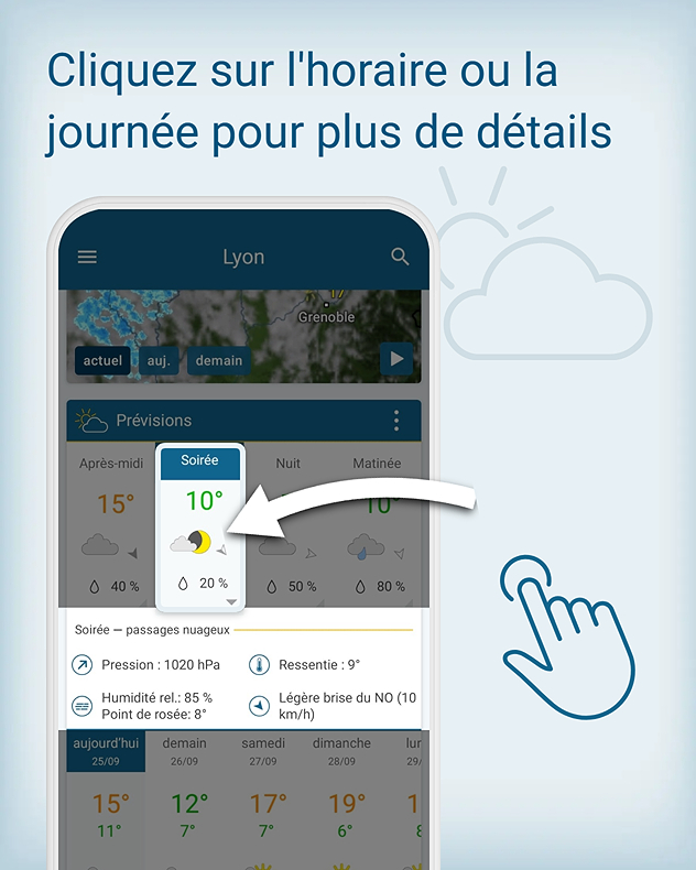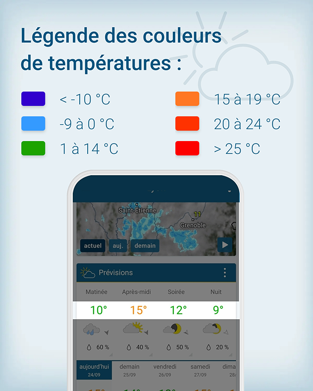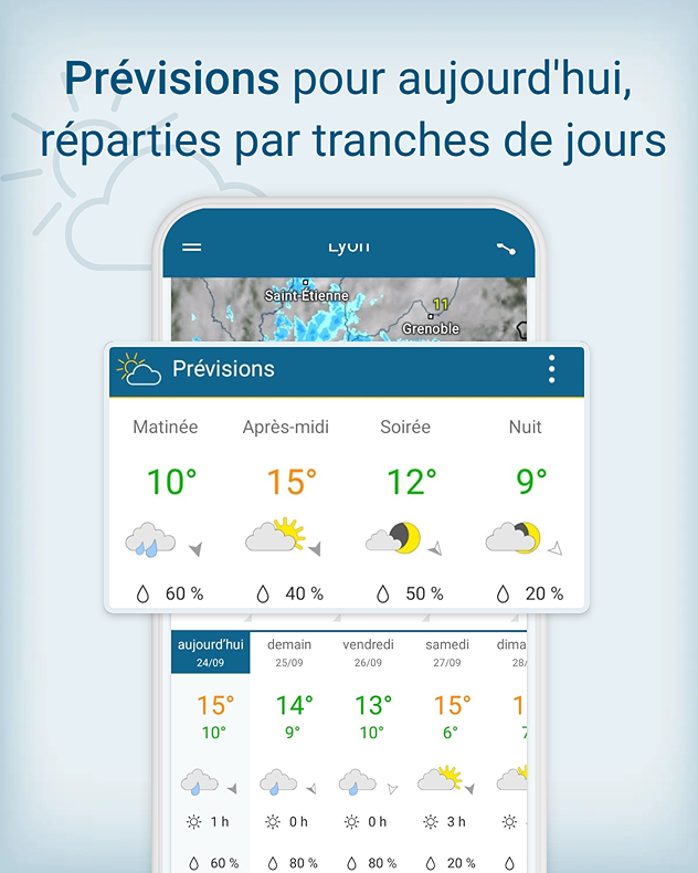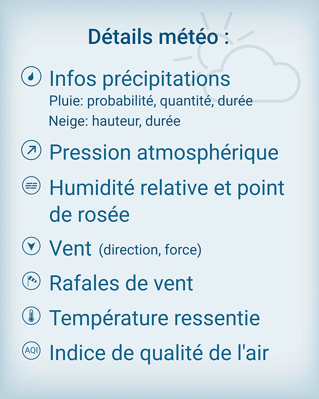 Qu’il s’agisse de rejoindre le bureau, de faire du sport en extérieur, de jardiner ou de prévoir une sortie entre amis, nos prévisions vous accompagnent à chaque instant afin de profiter pleinement de vos activités.
